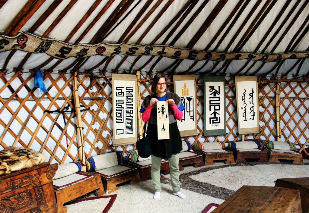 Here’s a photo of my name written in Mongolian calligraphy — it’s been a dream come true to study Mongolian language this summer in Mongolia (my third summer there!)…