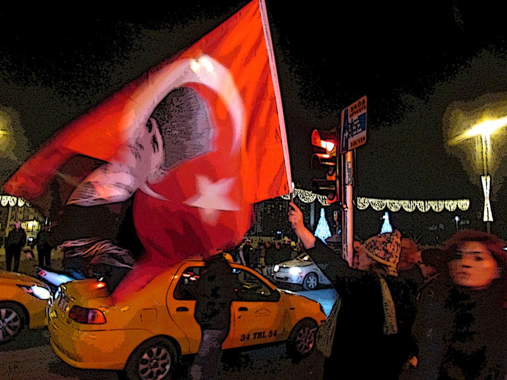About a week ago, when I was trying to reach my hotel in Taksim Square, I got caught in the middle of a protest–where police were using rubber bullets and tear gas to beat back the protesters. When I momentarily caught my breath, after escaping from the center of the action, I took this photo of a woman waving a flag of Ataturk and watching the mayhem unfold from the periphery. But today, instead of cracking down on protesters, police in Turkey are experiencing a crackdown of their own…