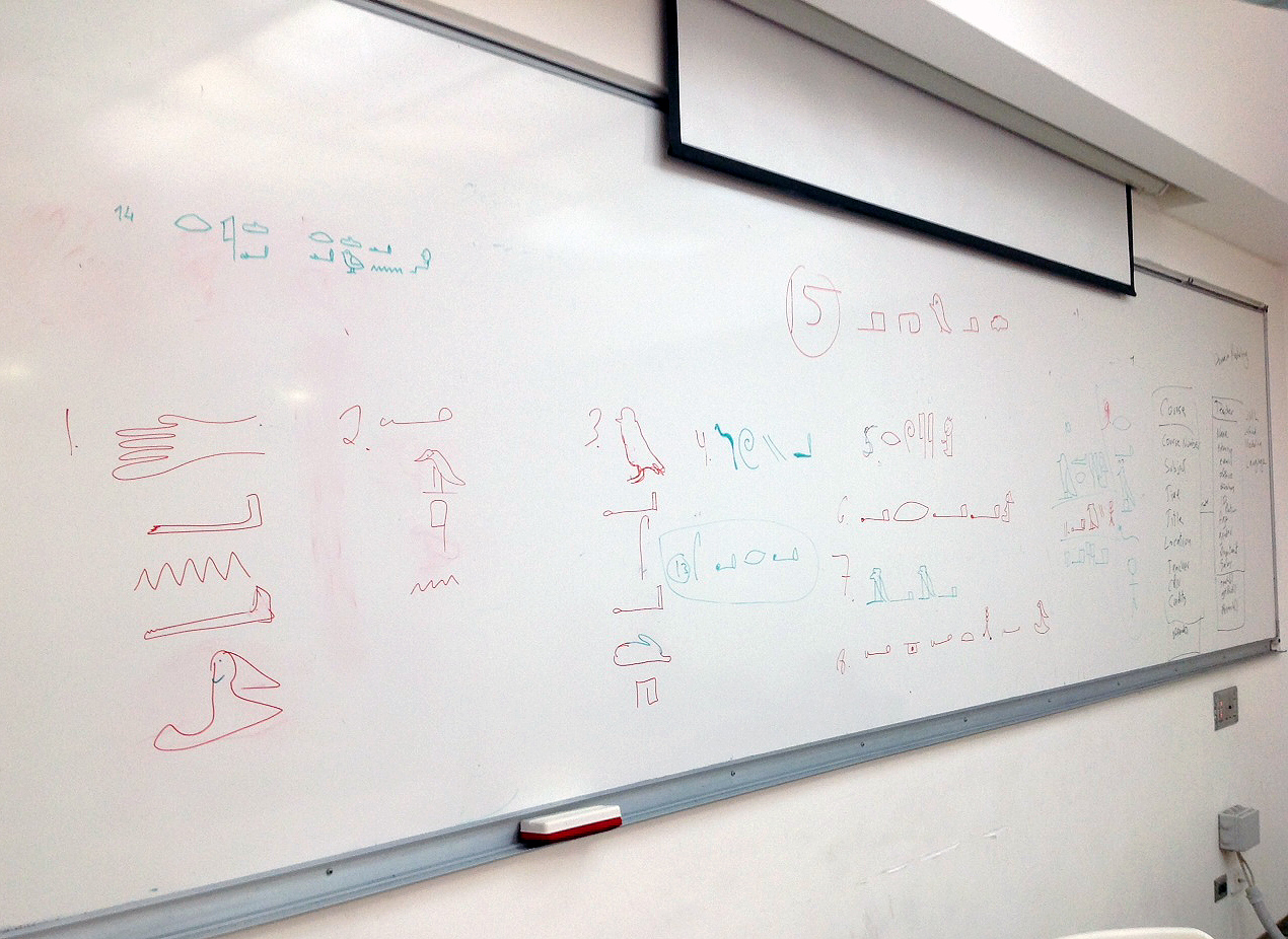It’s amazing how this introductory exercise in decipherment helps them to remember the names of their fellow students much more than if we just introduced ourselves by reading the attendance list aloud. Today, they were able to recall almost every name from memory–which was surprising since it’s not a small class…