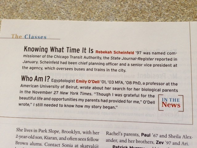 in the Brown Alumni Magazine, I’ve been hearing from old friends from Brown all week…