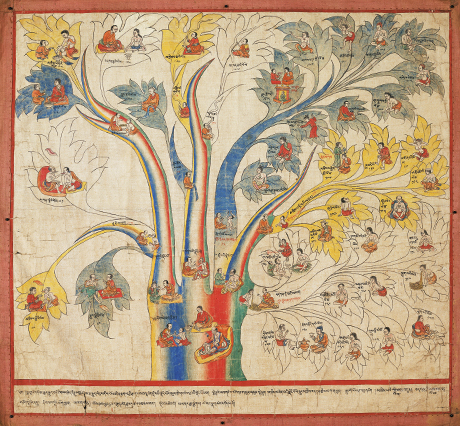 Tree of Diagnosis, Copy of Plate 3 of the Lhasa Tibetan Medical Paintings; Lhasa, central Tibet; date unknown; pigments on cloth and brocade; private collection, Chicago