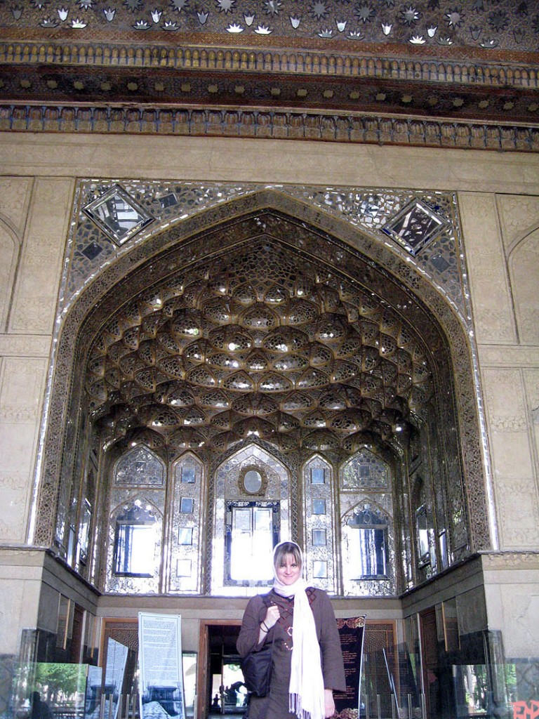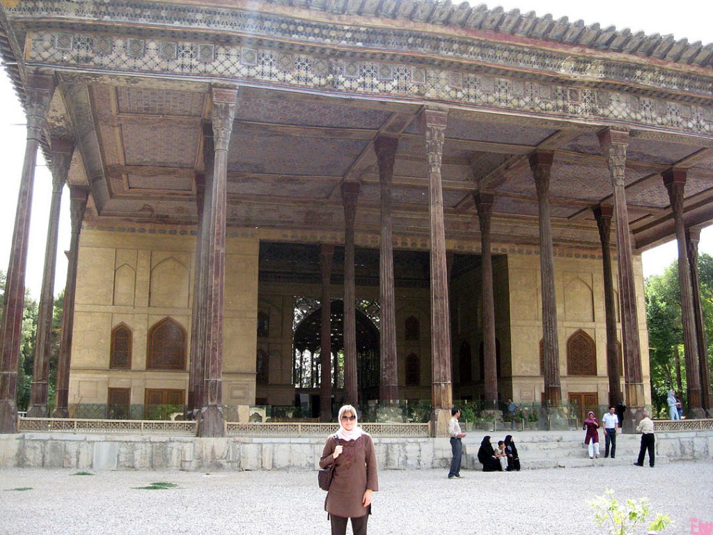 I’ve got a thing for palaces in Persia. One of my favorite palaces in Iran is the Chehel Sotun Palace–its name means “Forty Columns.” But if you look closely at the photo below, you won’t be able to spot 40 columns at all–since there’s only 20 holding up this Achaemenid-inspired talar (columnar porch). To see the other 20 appear, you’ll have to look in the palace’s pool (left) to see the columns reflected back.