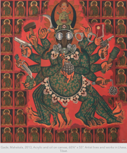Anonymous is an exploration of changing attitudes towards self-expression, attribution, and identity in contemporary Tibetan art. Traditional Tibetan culture placed little emphasis on individuality or artistic self-expression. Art adhered to a formal system of production to support the transmission of Tibetan religious culture and was, by and large, created by unattributed artists who remained anonymous. However, in the global contemporary market, the creativity of the individual has become the primary basis by which we produce, interpret and consume art. Innovation and novelty are often valued more highly than technique and tradition. Attribution, the artist’s name, has become a fundamental aspect of the work. Within the new social reality as part of the Peoples Republic of China, art is becoming a vital medium of self-expression for Tibetans. Artists are increasingly focused on the experience of the individual and a cautious 21st-century visual language steeped in irony, metaphor and allusion has fully emerged.