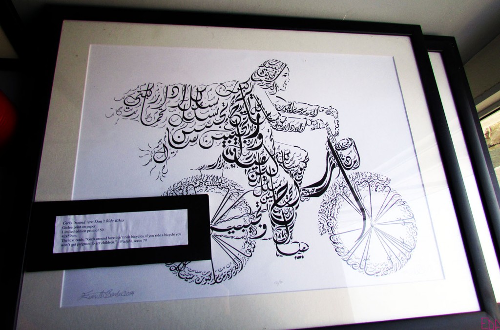 Yesterday, when I was teaching African migrant workers English in Beirut, I spotted this Arabic calligraphy inspired by Wadjda–the first feature-length film from Saudi Arabia…