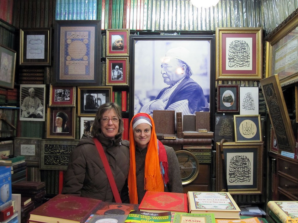Si no me equivoco, diría que se refiere al Shêij Muzaffer Ashki al-Jerrahi, un maestro Sufi de la orden Halveti-Jerrahi, quien acostumbraba vender manuscritos en una librería de la esquina del bazar (y que además escribió varios libros). Cada vez que encuentro a algún amigo en Estambúl, lo llevo a la librería en donde el Shêij Muzaffer trabajó –para ver las fotografías y caligrafías colgadas en su memoria a modo de santuario escondido.