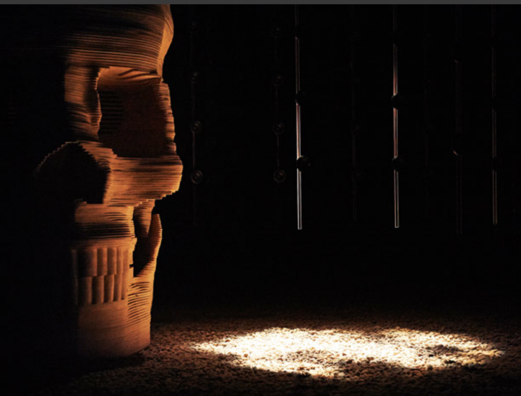 In and out goes the sound of the sea and beside it sits Henry, remembering. The troubled protagonist of Beckett’s 1959 radio play, Embers, cannot stop talking—to his dead father, drowned in the waves; to his dead wife, Ada; and to himself, a failed writer—leaving a twisted thicket of regrets and hallucinations for the audience to navigate. In this ghostly production from Ireland’s Pan Pan Theatre (All That Fall, 2012 Next Wave), two actors set up behind the eyes of a massive skull and, with the help of a sound artist, enliven the fevered mind of a man struggling to speak his world back into meaningful existence.