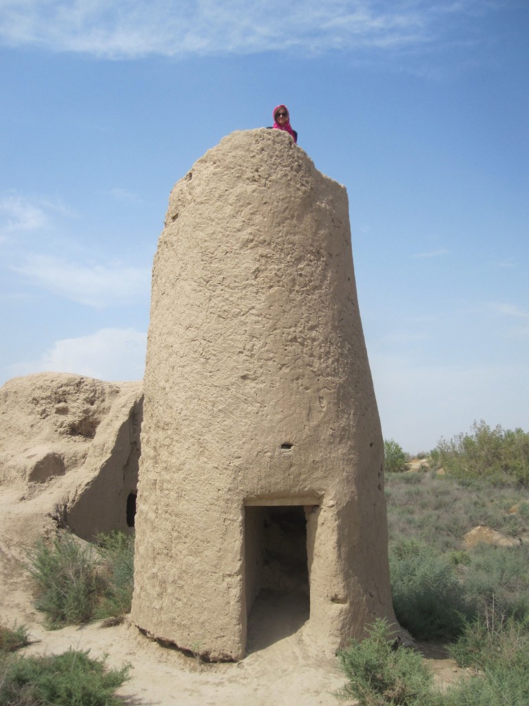 While driving to a Sufi shrine on the Silk Road, which I never had the chance to visit the last time I was living in Turkmenistan, we stumbled upon the ruins of a crumbling medieval madressa, as shown above. Though our driver was in a hurry to get home after a long day on the road, he still gave us enough time to not only climb over the ruins, but to climb up them as well.