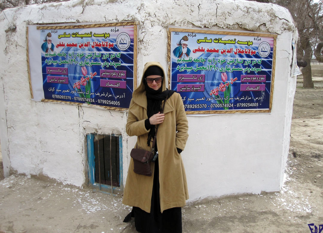 Sufis often talk about “following signs”–i.e. listening to so-called “cues” from the heart or beyond. But while I was in Afghanistan, I was literally following signs in my hunt for Rumi’s legacy and memory. To my surprise, there were visual and poetic traces of Rumi almost everywhere I traveled–from Persian verses of his masterpiece being recited by childrento bright posters stamped with his image stuck on mudbrick walls. On the poster above, Rumi’s name is given as Mevlana Jalaluddin Muhammad Balkhi–with “Balkhi” meaning the one from “Balkh” (where this photo was taken).