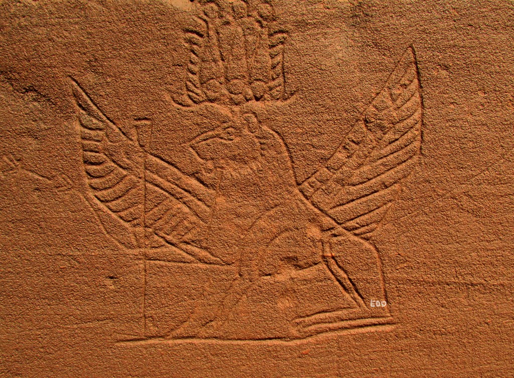 When I visited this ancient temple complex in Sudan, I was on the hunt for as many samples of graffiti as I could find. Along the way, I found carvings of ostriches, giraffes, and lions–such as the graffito below, which is one of my favorites in Sudan…