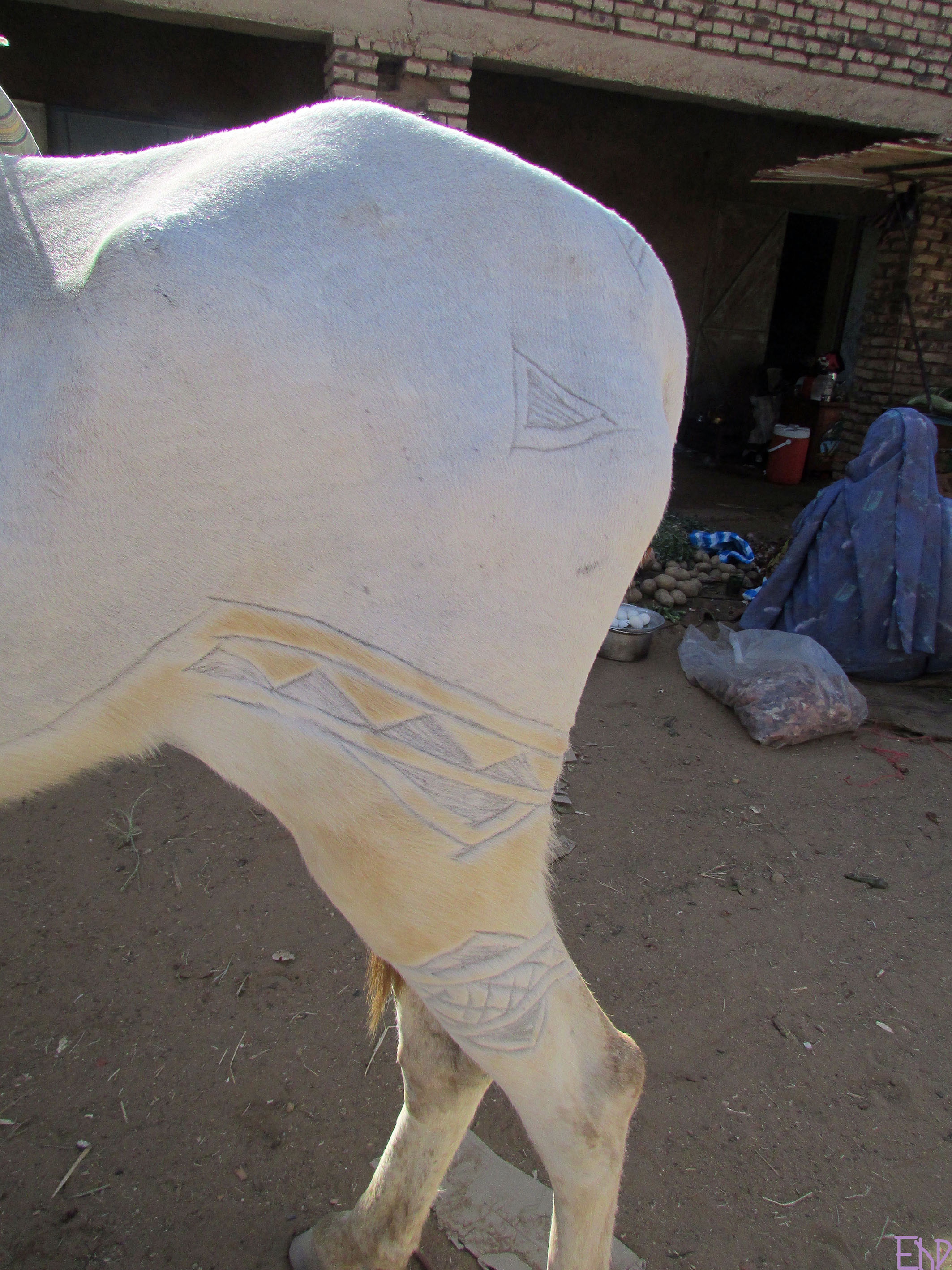 One day, while I was walking about thirty minutes from my mudhut home in Sudan through the desert to buy groceries at the local market, I ran into this man on a donkey who wanted to talk. Since I’m always happy to meet new neighbors, I stopped to chat with him for a while in Arabic–but my eyes stayed glued to the designs decorating his donkey (which reminded me of the pyramids just down the road)…