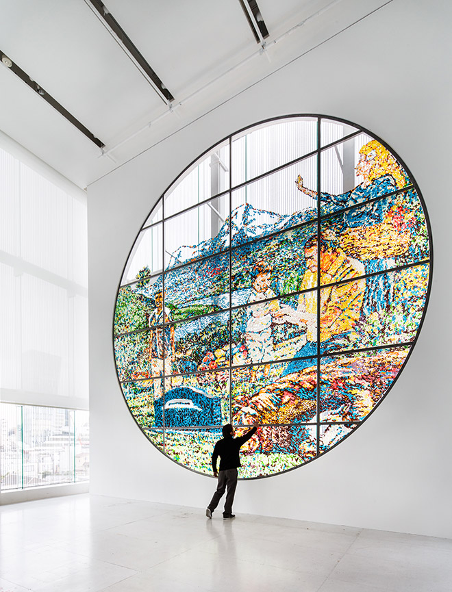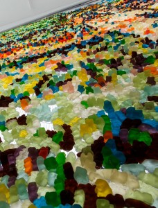 Conceived by curators Murielle Hladik and Eva Kraus, “Traces of Disappearance” invites visitors to reflect upon “what is about to vanish,” by contemplating the current condition of our fragile world. In a way, Kasper’s “The Sheer Size of It” strikes me as a modern art mandala (沙坛城)–made with candy instead of sand. Over time, as the heat of the sun begins to melt this gummy bear panel of “paradise,” paradise will be transformed from a utopian vision to a grotesque mess.