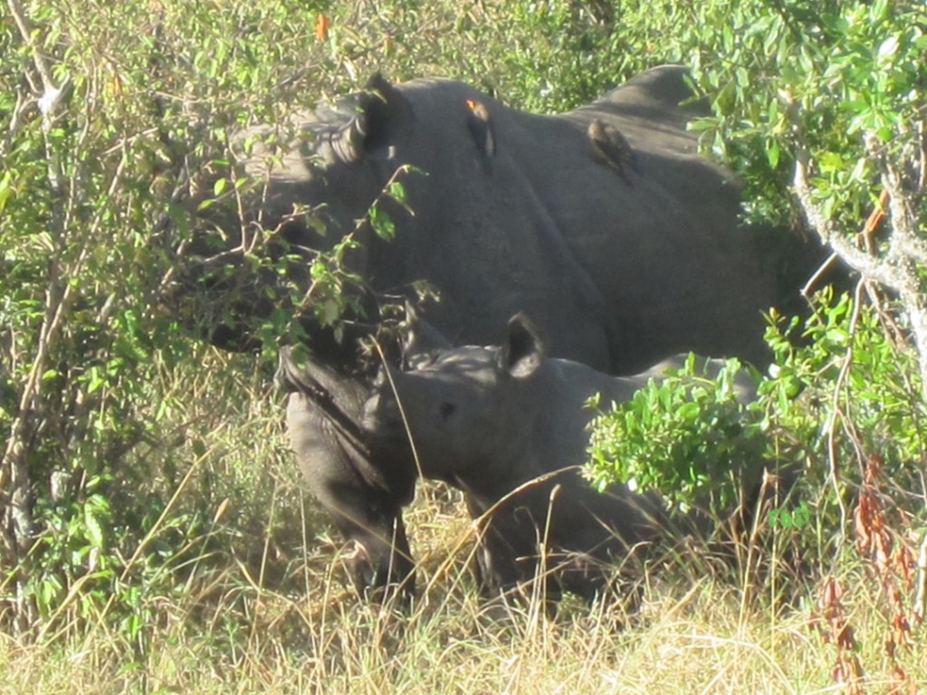 When I was leading a safari in Kenya and Tanzania, we were very lucky to catch a glimpse of this baby rhino hiding with its mother in the foliage. With poaching decimating rhino and elephant populations throughout Africa, sometimes it takes a village to protect them…