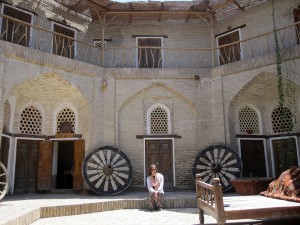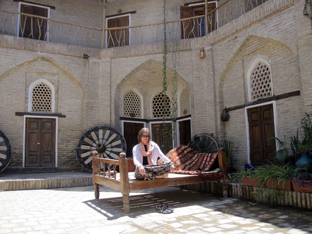 Welcome to my home away from home in Bukhara. This is the madressa in Uzbekistan where I like to stay and unwind when I’m working in Central Asia. Not far from this oasis of peace and relaxation (otherwise known as a bed and breakfast) is a statue of Nasreddin–a legendary comic figure from the Middle Ages whose stories use humor to impart a spiritual or moral lesson.