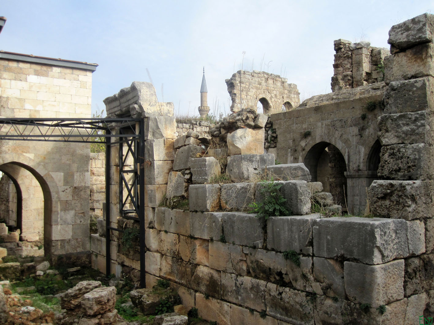 Wherever I wander, I go in search of minarets–of all shapes and sizes.  I found this thin minaret peeking out from behind these ruins in Antalya, while I was on my way with family to visit the tomb of Rumi in Konya for Shab-e Arus