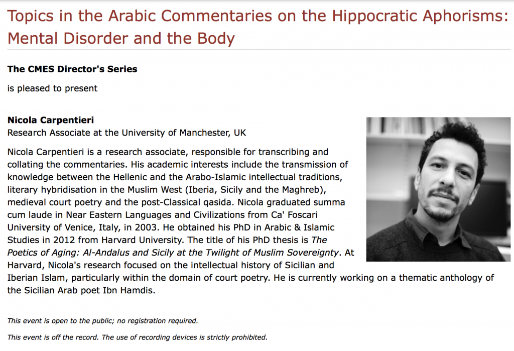 Monday, October 6, 2014 12:00-2:00 pm Harvard University/CMES 38 Kirkland Street Cambridge, MA