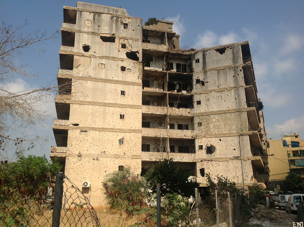 “In case there’s war, you need to stock up on water too,” my Lebanese friend said yesterday, as we parked in front of the building above. She was speaking from experience. Staring at that scarred shell of the past–rendered in concrete pointillism–I wondered if I was staring into the future too.