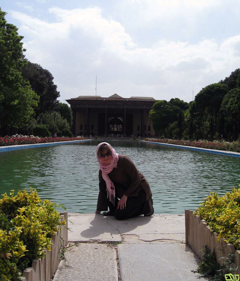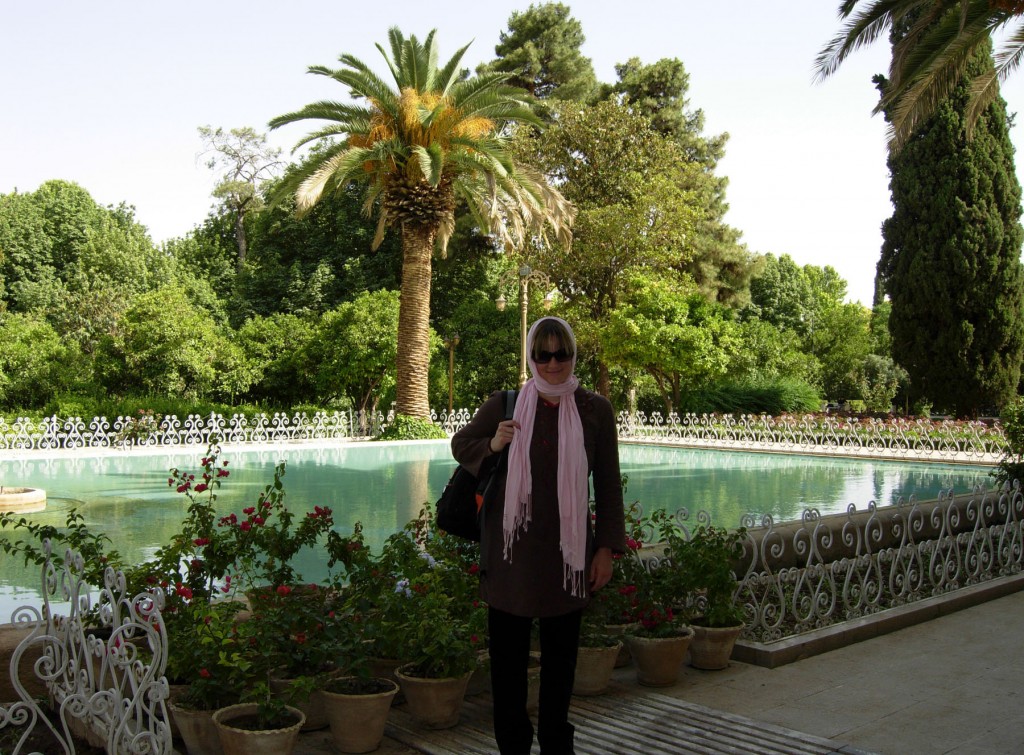 One of my favorite things to do when traveling through Iran is to spend time strolling through the exquisite gardens of the palaces in Shiraz and Esfehan. When most people think of Iran, they think of deserts and camels–not lush green gardens and snow–or paradise. But the English word “paradise” is derived from the Old Persian word used for a garden enclosed behind estate walls. Because Persian gardens integrate the four Zoroastrian elements of sky, earth, water and plants, water plays a central role in their decoration, as you can see in these two photographs from Iran…
