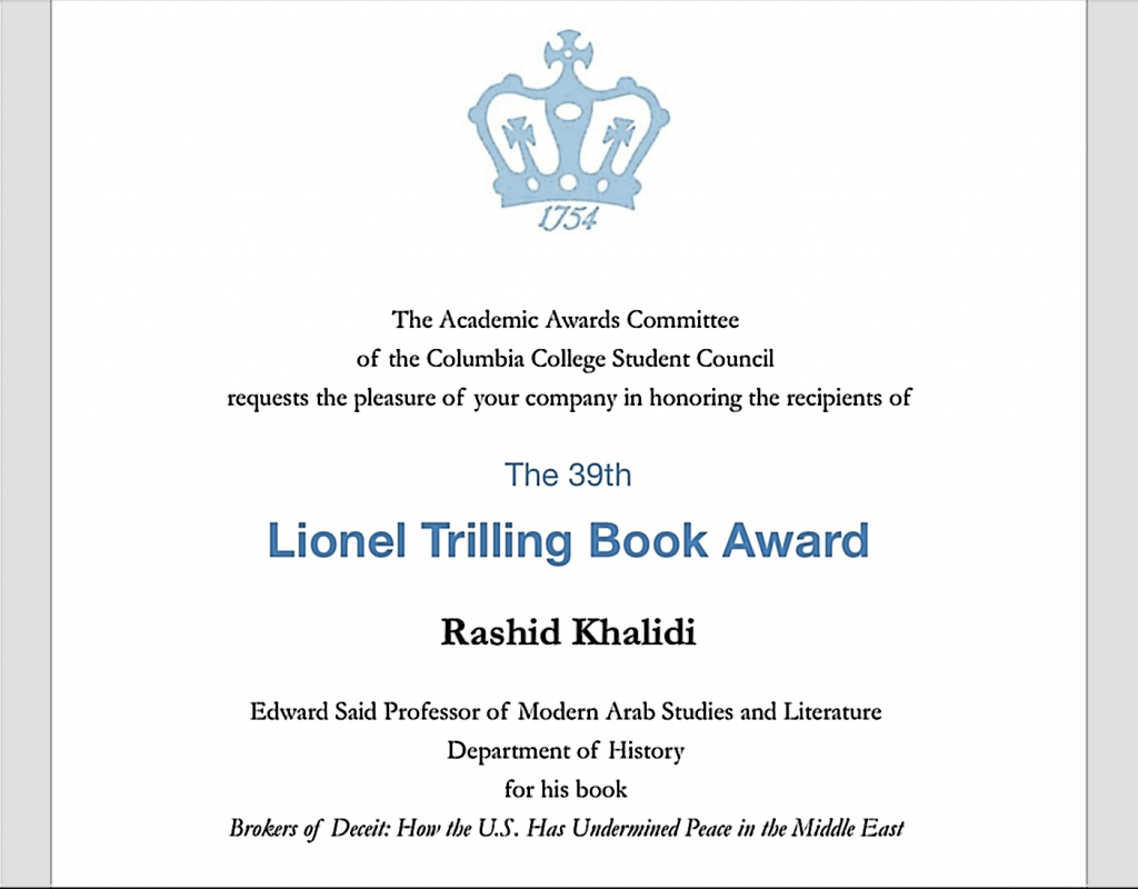 In two weeks, my former professor and colleague, Rashid Khalidi, will be honored at Columbia University for his bold new book.