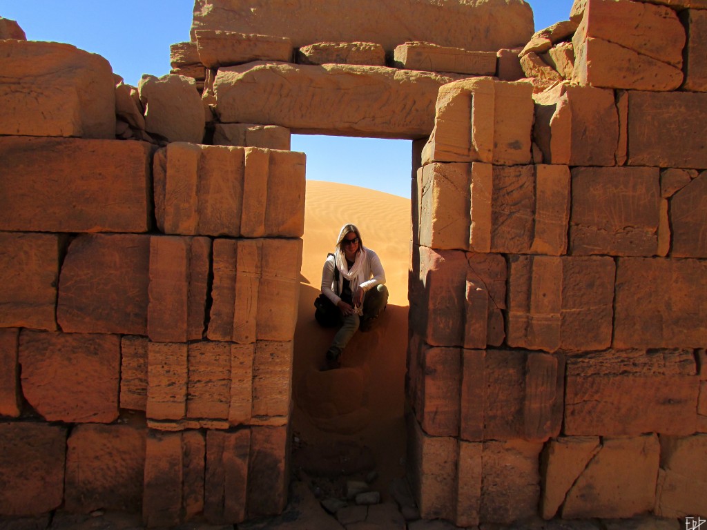 While exploring every inch of the Royal Pyramids of Meroe in Sudan was indeed thrilling, it was also exhausting. At one point, I sank into the warm embrace of this sand dune for a much-needed break in the shade…