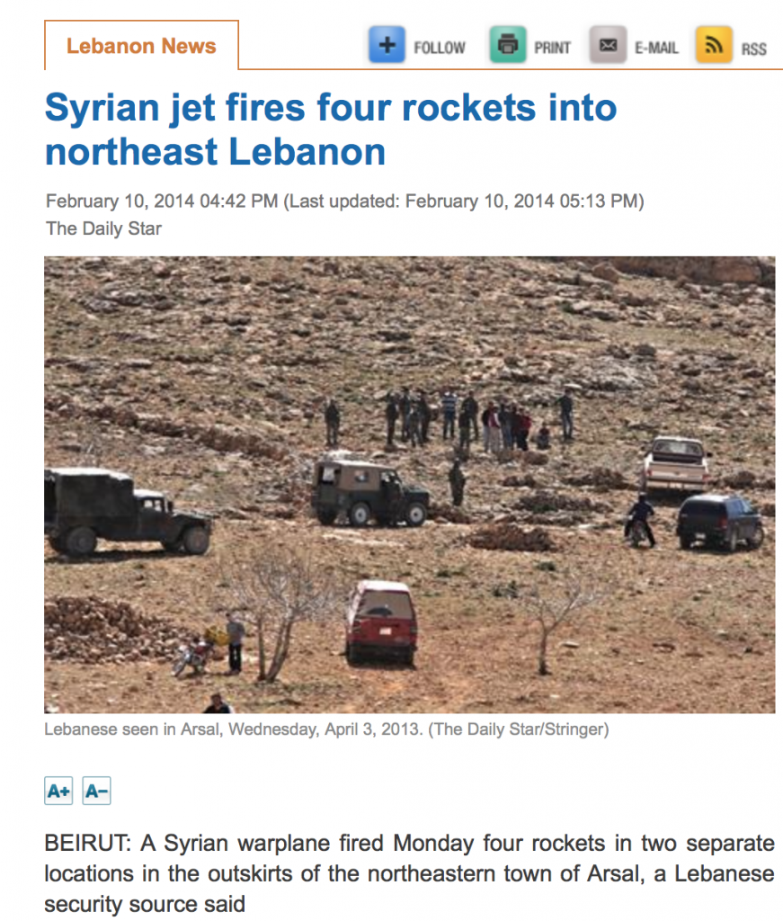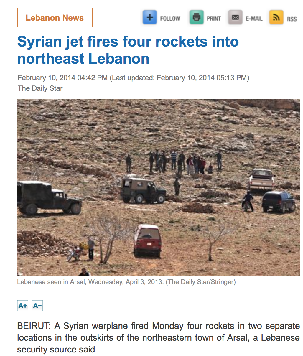 Today, like almost every other day, Syrian jets fired rockets into northeast Lebanon