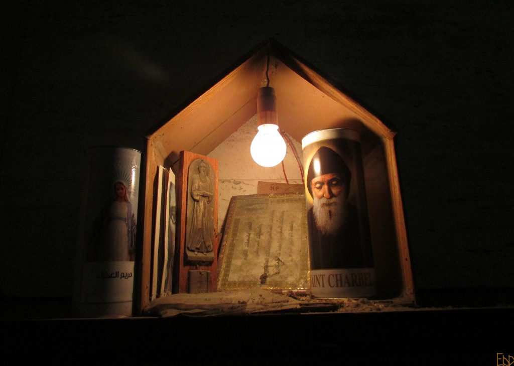 tai chi class in Beirut, I noticed this small shrine with a candle dedicated to Saint Charbel inside. A Maronite monk and priest, St. Charbel (d. 1898) spent 23 years of his life as a solitary hermit in Lebanon. In describing this saint, Pope Paul VI (who presided over St. Charbel’s beatification), said: “A hermit of Mount Lebanon is enrolled in the number of the blessed…a new eminent member of monastic sanctity has by his example and his intercession enriched the entire Christian people…may he make us understand, in a world largely fascinated by wealth and comfort, the paramount value of poverty, penance and asceticism, to liberate the soul in its ascent to God.”