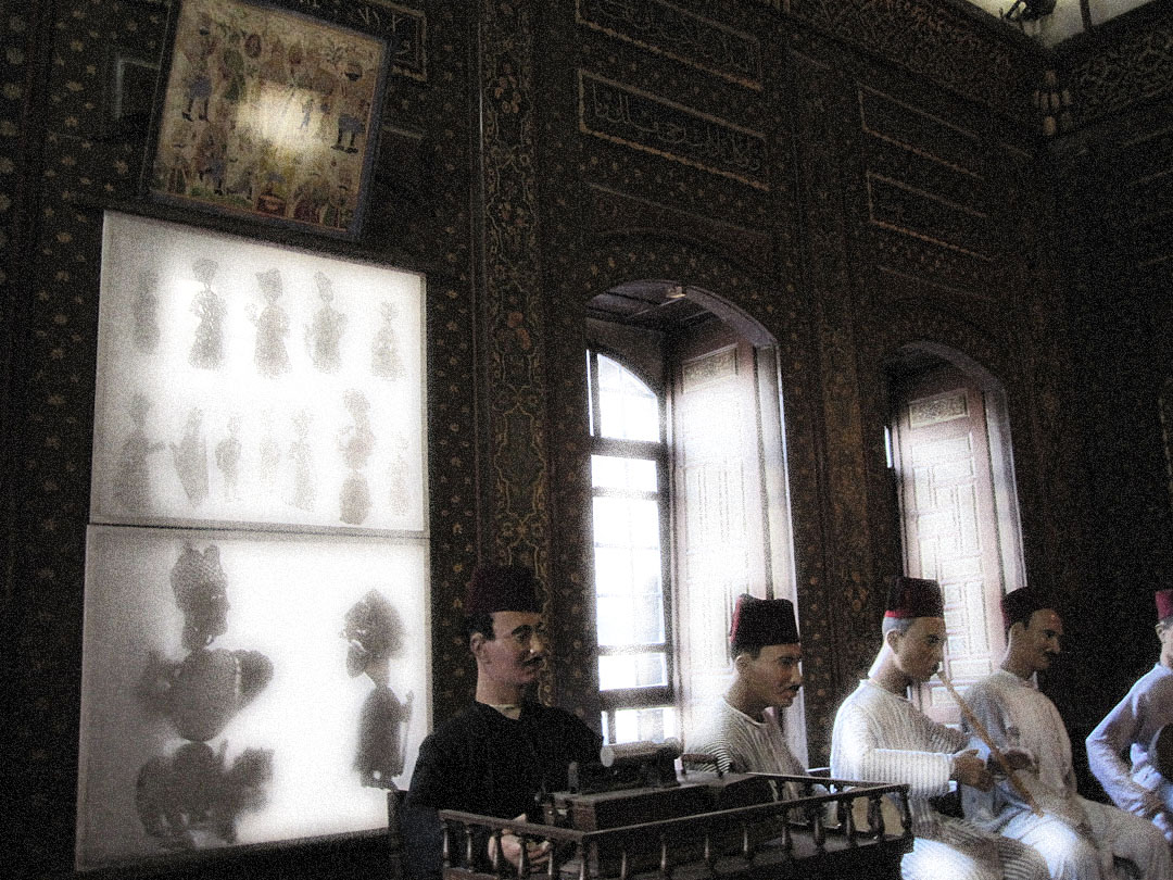 I really can’t get enough of puppets. So you can imagine my delight when I walked into the Azm Palace in Damascus–mentioned in my piece “Sharing the Sufis of Syria”–and saw not only statues of whirling dervishes and reed flute musicians–but also raw hide shadow puppets too. To see these shadow puppets on display in Damascus was a wonderful reminder of this region’s long and complicated puppet history. Shadow puppet performances were especially popular in the Middle East in Ottoman times–in places like Turkey, Egypt, and Syria. Today, it’s still possible to watch a master shadow puppeteer at work, and Syrian shadow puppets are even being used in Lebanon to help Syrian refugee children adjust to their new schools.