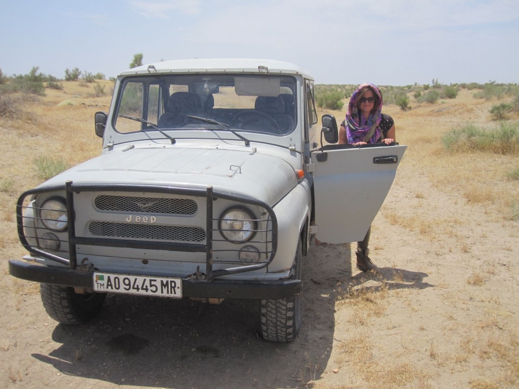 When we reached our furthest point in the desert, we stopped to enjoy a picnic lunch on the Silk Road itself, and our driver poured many bottles of water on the radiator to cool it off…there’s no end to the treasures and adventure here in beautiful Turkmenistan…