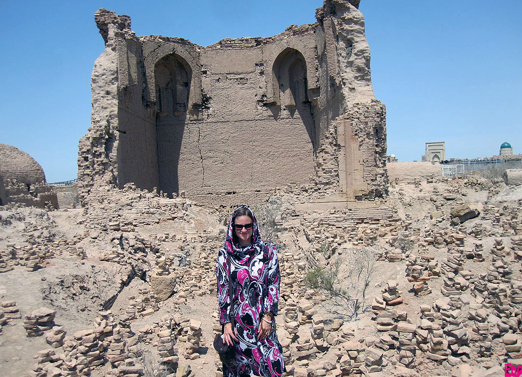 In a post yesterday, I looked at prayer stones left behind at Sufi shrines in Turkmenistan. But to leave a prayer or wish at the side of a shrine using stones, the stones don’t need to be leaning up against one another–they can be stacked on top of one another too–like in the photo above. When I arrived at the ruins of this medieval madrassa in Uzbekistan, which was nestled in a cemetery of turquoise-domed shrines, I was surprised by the large number of stones stacked at my feet like tiny towers, as far as my eye could see. When I did conservation work this summer in Central Asia, this ritual posed a preservation problem–since stones were being pulled from the very shrines we were trying to protect…