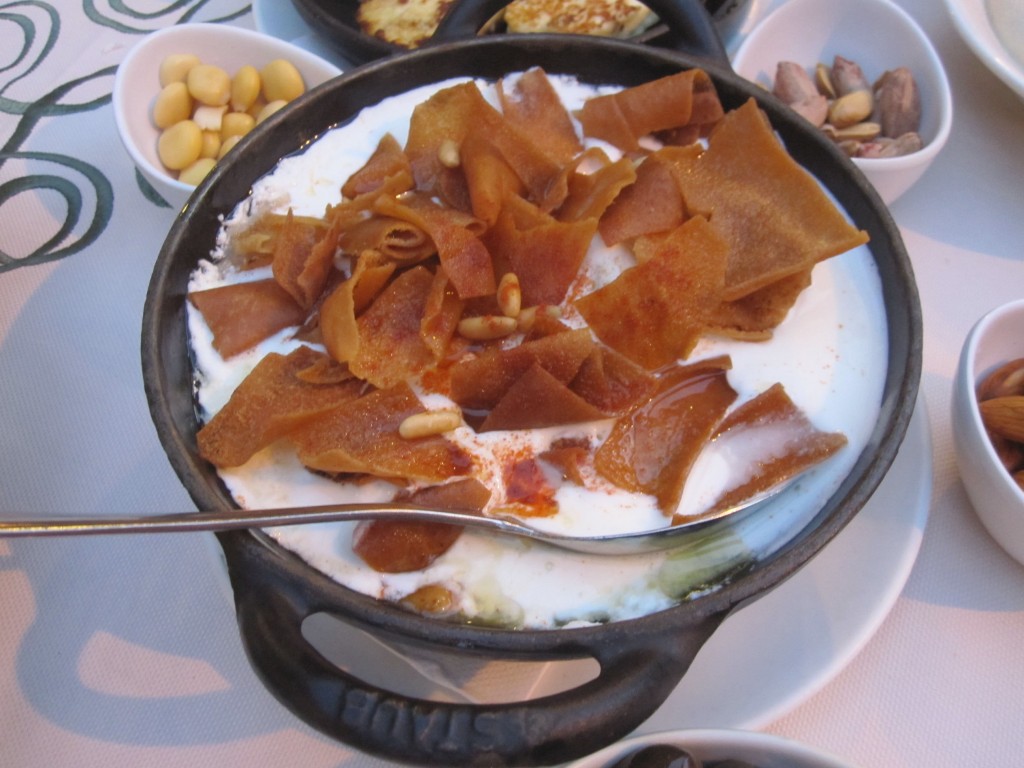 After the concert, it was on to Mezyan, one of my favorite cafes in the city for some midnight snacks–like feta and green peppers–and best of all–fatteh–a vegetarian dish filled with chickpeas, yogurt, nuts, toasted pita, and hummus…