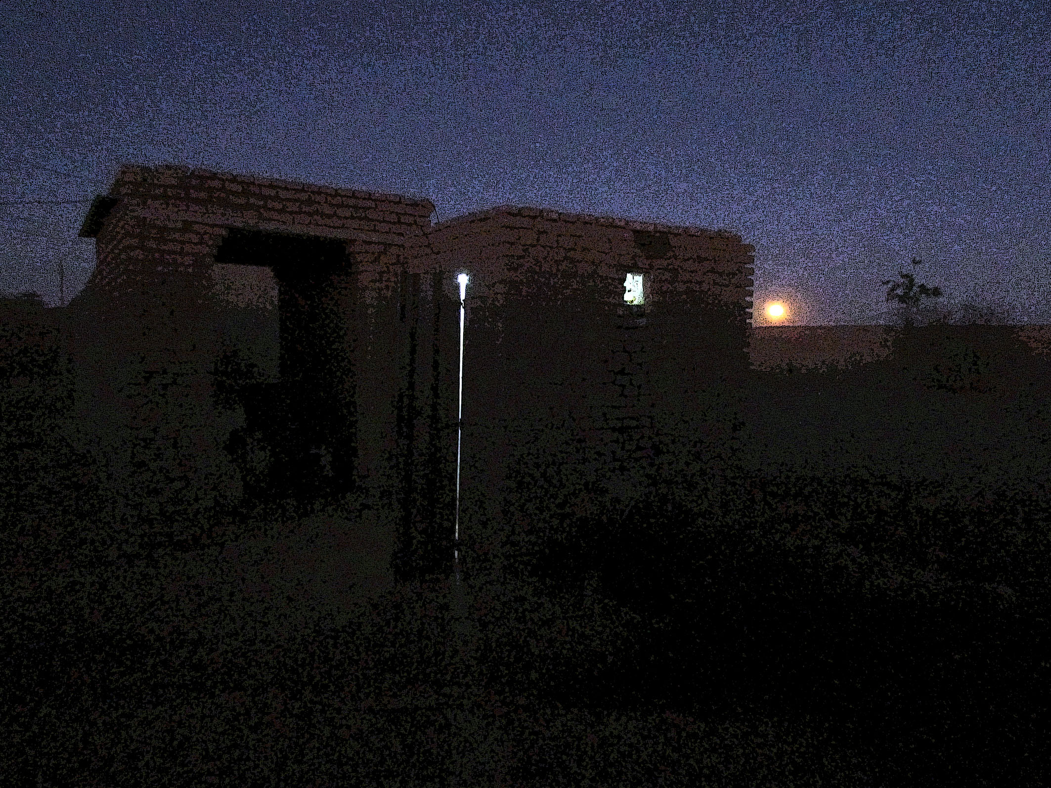 Moonrise over my mudbrick shower in Sudan (Photo: Emily O'Dell)