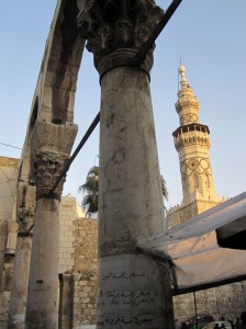 One of my favorite features of the Umayyad Mosque in Damascus is the incorporation of Roman columns throughout the entire mosque complex–both inside of the mosque and out. The site was once home to a Roman temple to Jupiter–before it was transformed into a Christian basilica. Inside of the mosque is a shrine believed to hold the head of John the Baptist–which is why Pope John Paul II visited the shrine himself in in 2001 in the first papal visit to a mosque. Like many mosques, the Umayyad Mosque is a true palimpsest of pagan, Christian, and Muslim history, iconography, and belief. To get to see it in person–was a dream come true…