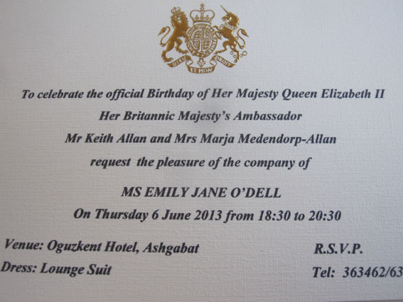 Emily O'Dell celebrating the Queen's birthday in Ashgabat