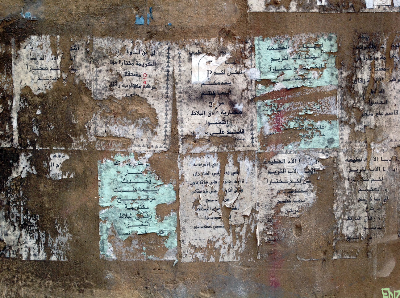 As I passed by this wall in Beirut on my way to visit some Sufis, I felt compelled to take a photo–since the color of the wall and these decaying fliers reminded me, in a way, of previous papyri and palimpsests I’ve translated…