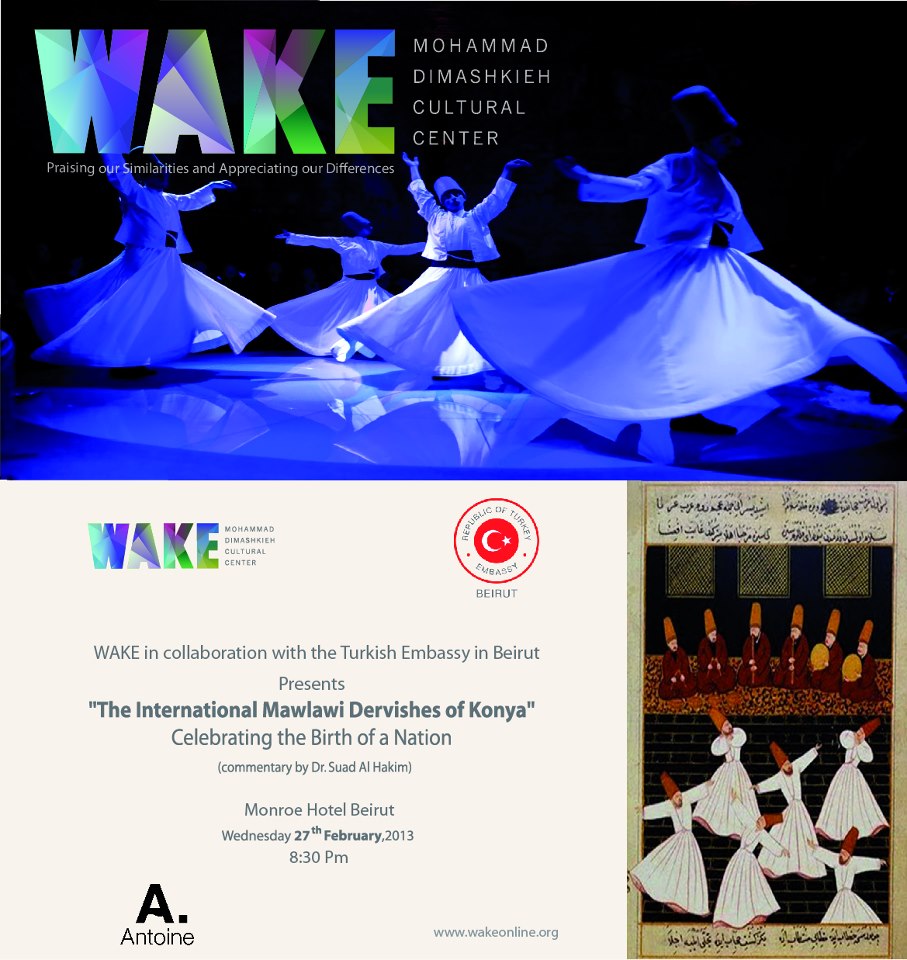 Tonight I had the pleasure of performing with Sufis, singers and musicians at WAKE in Beirut. WAKE is a non-profit organization established in memory of Mohammad Dimashkieh (1988-2011), who passed away in a tragic car accident in Beirut on 14 January 2011. At the time, he was a student finishing his senior year at the American University of Beirut.